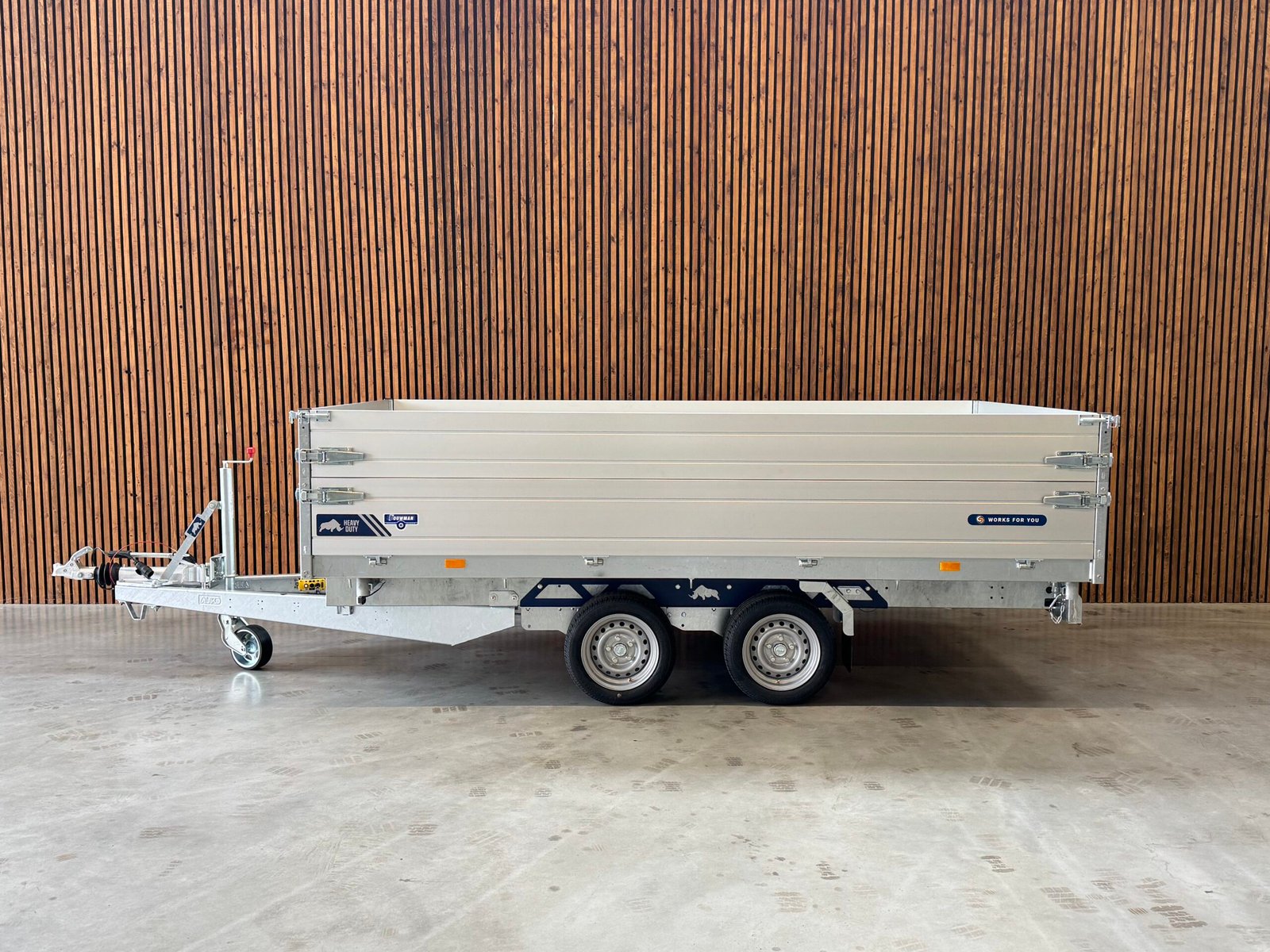 Het laden van goederen is gemakkelijk dankzij de grote vlakke laadvloer en de neerklapbare en afneembare wanden. De elektrische kip mogelijkheid van deze aanhangwagen maakt het het lossen van bulk materialen tot kinderspel. Let op de trailer op de afbeeldingen kan voorzien zijn van opties die niet zijn meegenomen in de prijs.